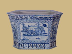 1) HAND PAINTED BLUE & WHITE PORCELAIN PLANTER