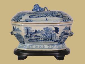 1)HAND PAINTED BLUE & WHITE TEREEN