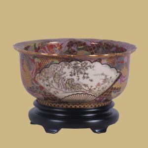 SATSUMA GOLD PORCELAIN BOWL WITH BASE